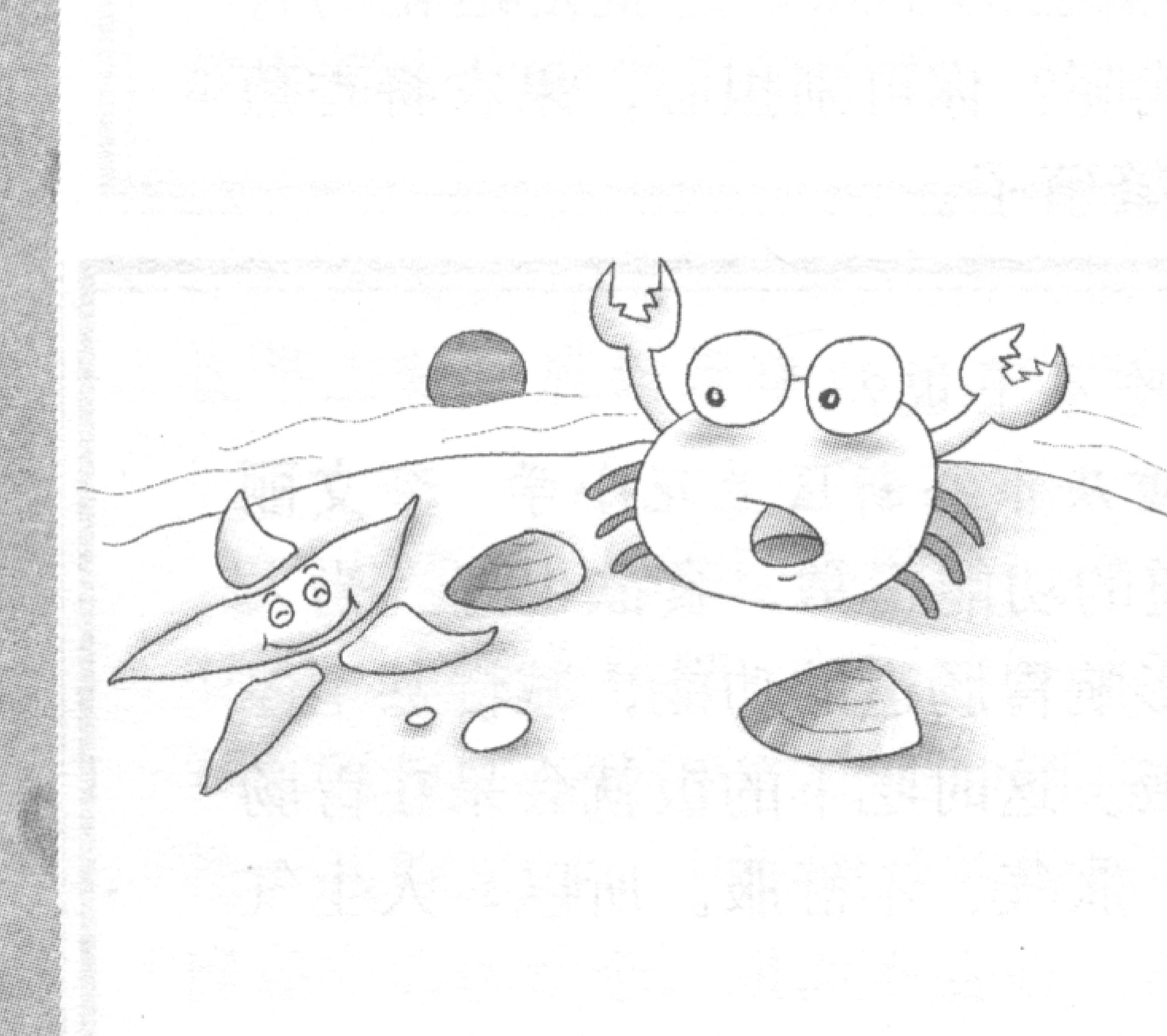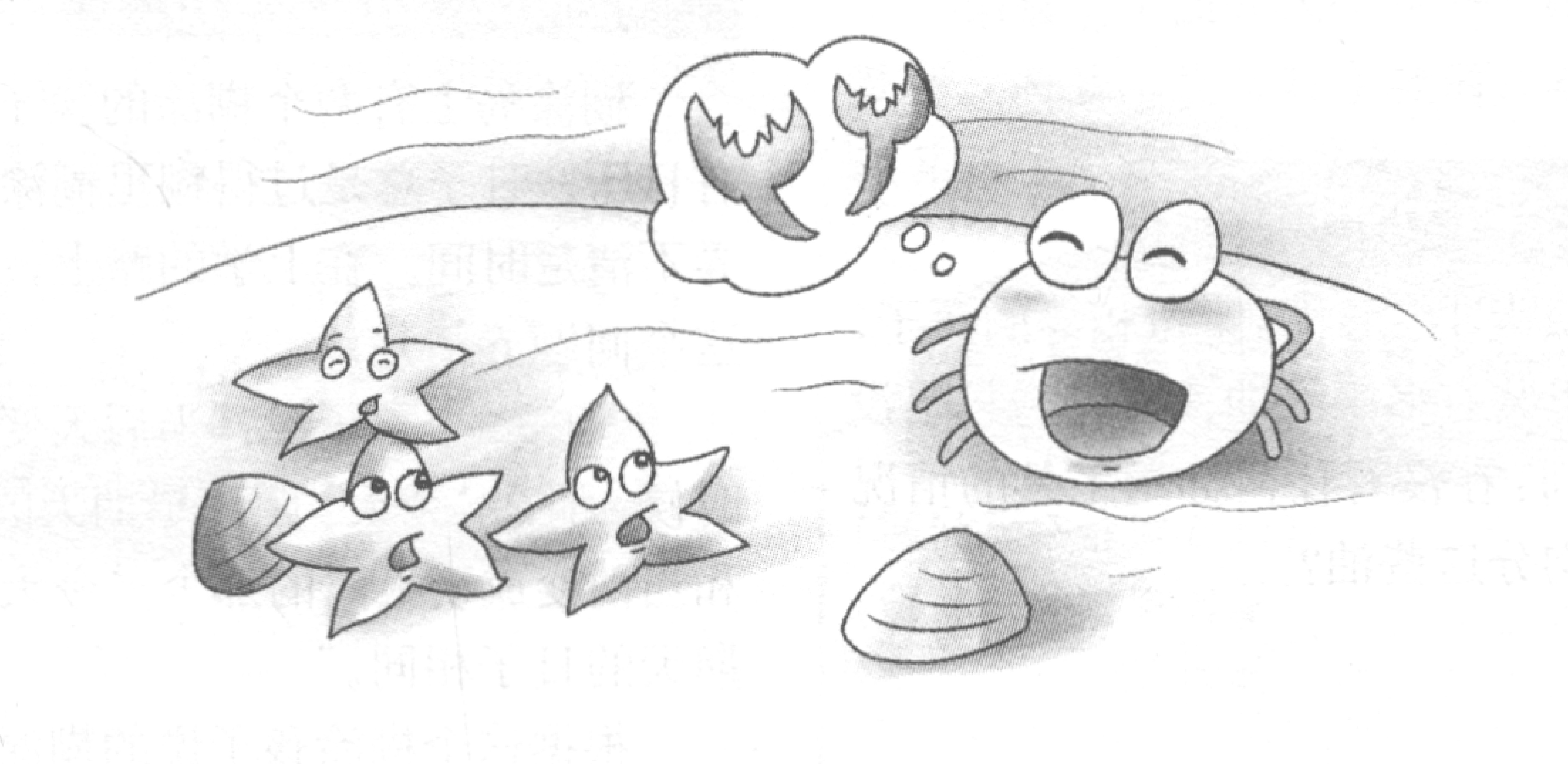 4.(螃蟹得意地笑着,小海星很吃惊的样子。)