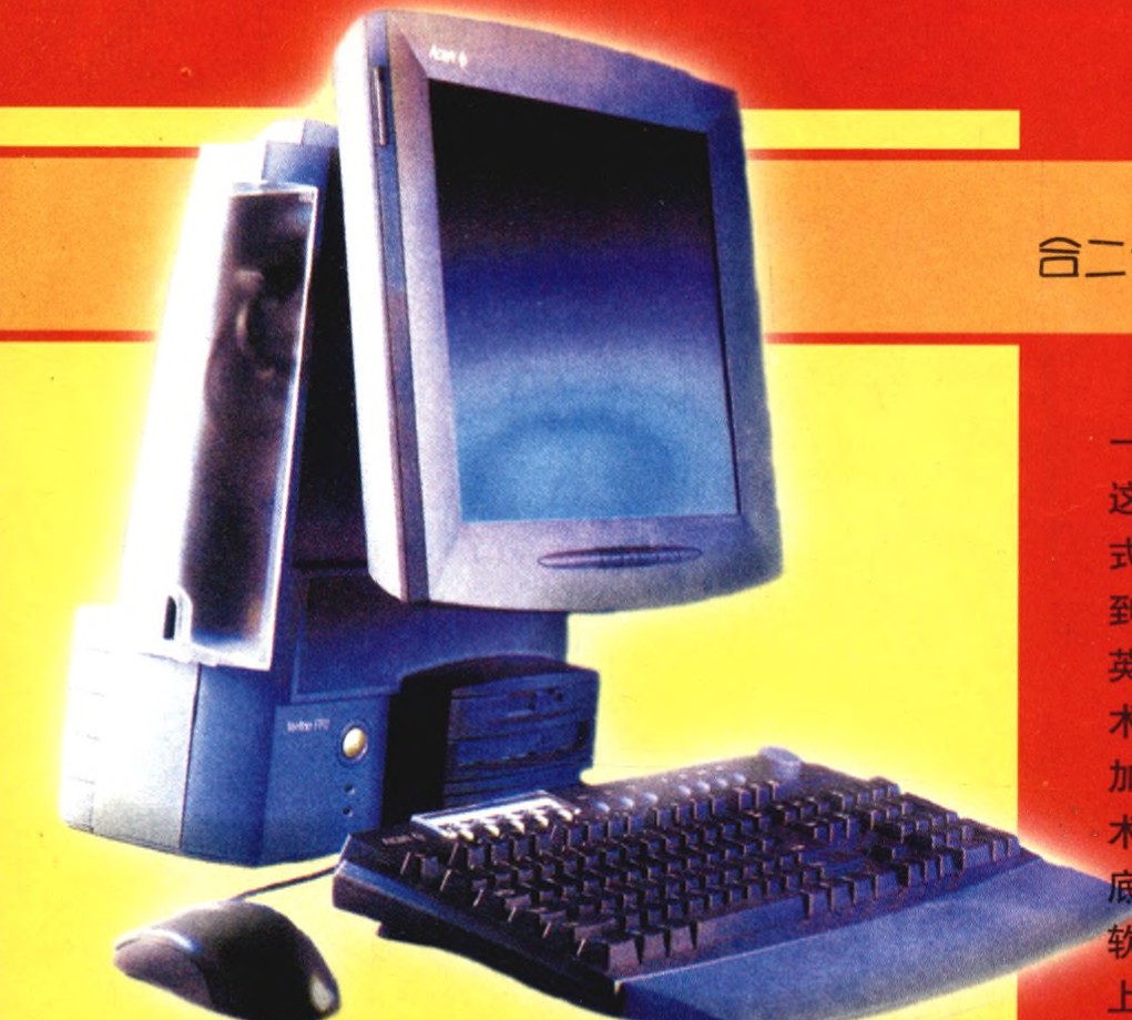 个人电脑设计的新理念是:全部合二为一。Acer公司的新型电脑Veriton Fp2就实现了这一理念,并以此确立了电脑的新标准,即款式新颖,外型雅致,功率强大。它将重量减小到了最低限度,因为所有内置部件都安装在15英寸的液晶显示器的底座中了。这一利用新技术完成的机型能使电脑更适应环境的要求,更加以人为本,减少了眼睛的疲劳。进一步的技术革新将是用更大的控制版替代现有的键盘。底座的组成包括一个15GB的硬盘、3.5英寸的软盘驱动器和一个CD-ROM驱动器,在此基础上还可以增加DVD等设备。