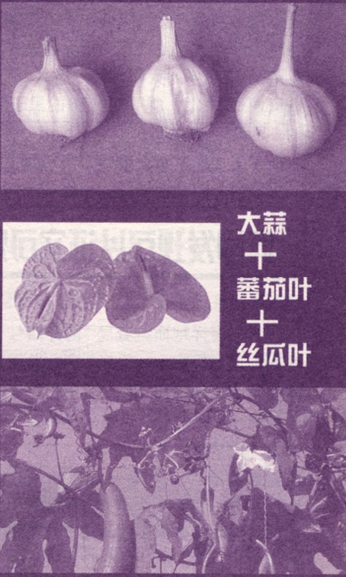 大蒜浸出液可神了!我们惊奇地发现,平时我们炒菜用的大蒜,捣烂后与丝瓜叶、蕃茄叶浸泡成“天马1号农药”,效果不错,可就药效缓慢。