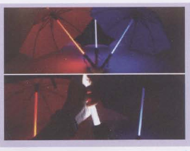 不要以为光剑只出现在科幻影片里。光剑伞把时尚与发光二极管手电筒的特性相结合,把发光的彩色手柄和雨伞很强的防水性相结合,使得你在昏暗的雨天,可以制造出独特的美景。