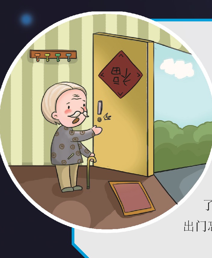 我发现随着年龄的增大,爷爷奶奶关门后忘记带钥匙的现象时有发生,于是我就想设计一款智能提醒器。这种提醒器只有硬币大小,可以很牢固地贴在门锁上。每天爷爷奶奶只要一开门,它就会发出“滴滴”声,并自动提醒道:出门请带好钥匙!当然,你从外面开锁它是不会发出任何声音的。有了我的智能提醒器,就再也不用担心爷爷奶奶出门忘带钥匙了。