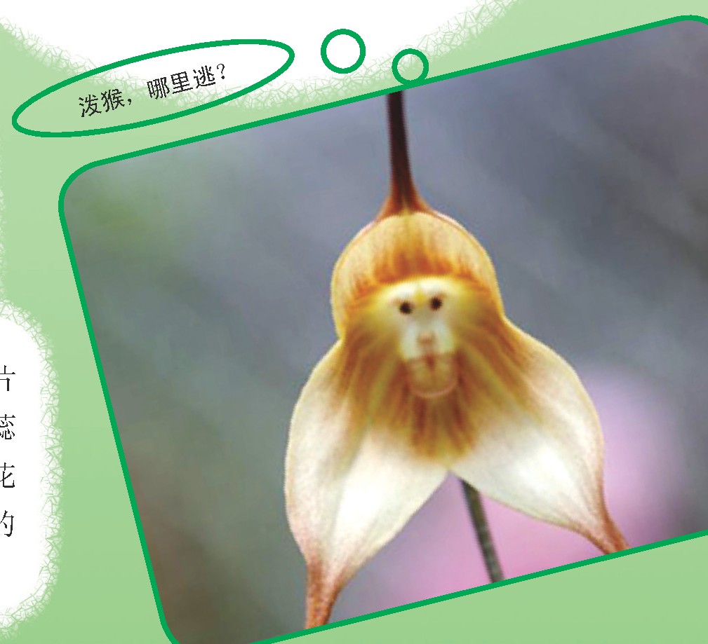 在厄瓜多尔东南部和秘鲁的雾林里,生长着一种怪异的兰花,因长得像猴脸被称为“猴脸兰花”,学名“猴面小龙兰”。“猴脸”和“猴嘴”是兰花的唇瓣,三片像花瓣一样的东西实际上是萼片,而花蕊和花柱则像猴子的额头和鼻子。猴脸兰花通常生长在海拔近1 400米~2 600米的高山上,非常隐秘,因此很难被人发现。