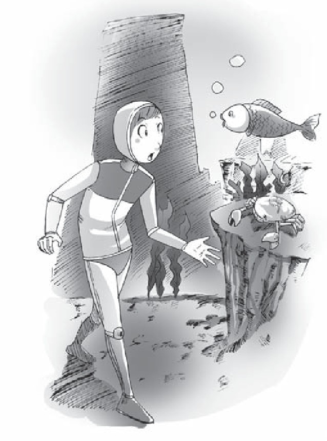你们看,人们身上都有特制的气压服,这种气压服可以帮助人体获得氧气,使人不会缺氧。如果走累了,该怎么办呢?相信大家都会说,歇一会么。哈哈,在螃蟹城可就完全不是这样了。如果走累了,只要按一下气压服上的自动行走,气压服就会自动开启吸水装置,同步排水,令人能够毫不费力地“行走”。而且,“行走”的路线都是由人的需要来定的。