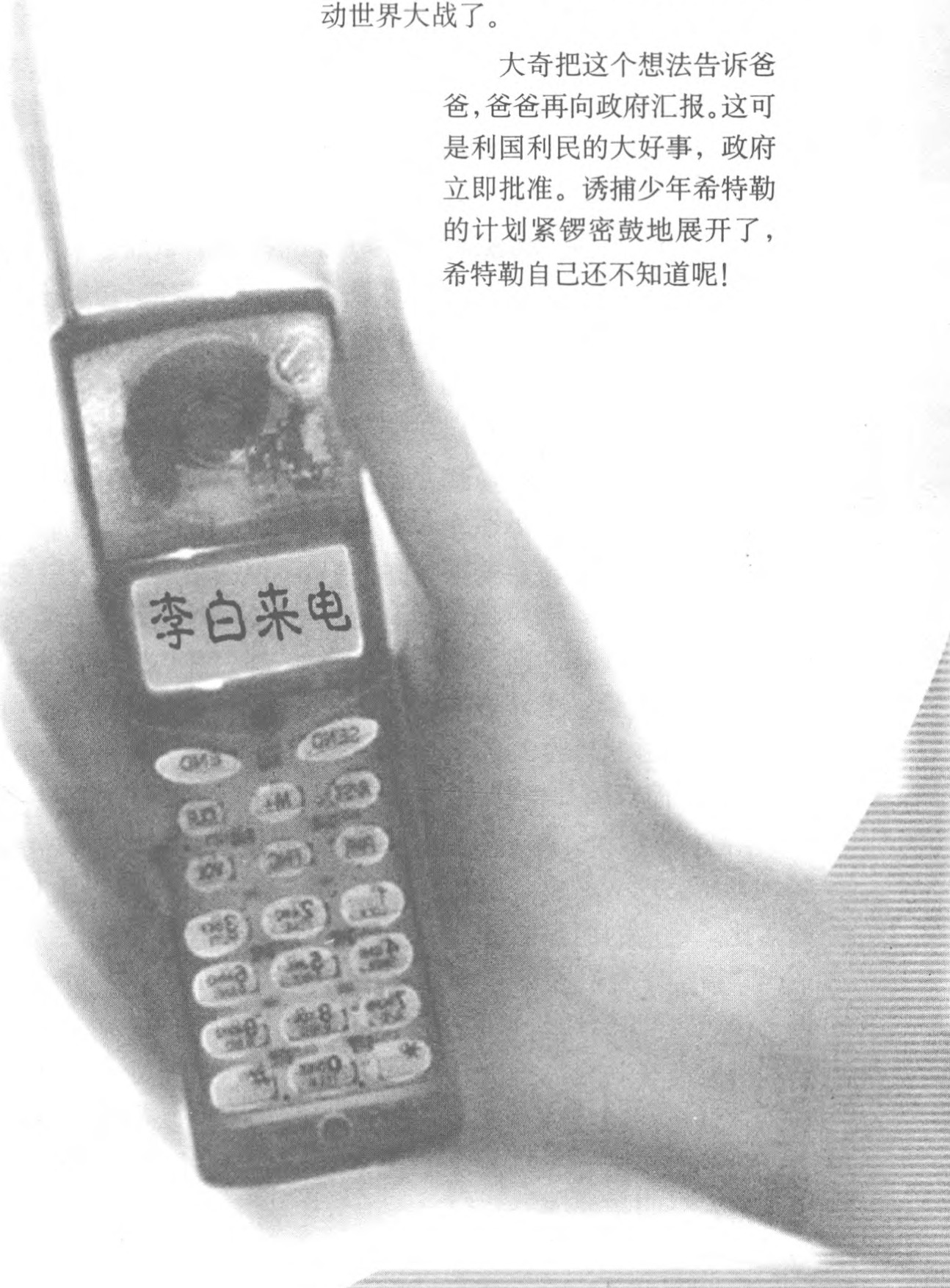 大奇把这个想法告诉爸爸,爸爸再向政府汇报。这可是利国利民的大好事,政府立即批准。诱捕少年希特勒的计划紧锣密鼓地展开了,希特勒自己还不知道呢!
