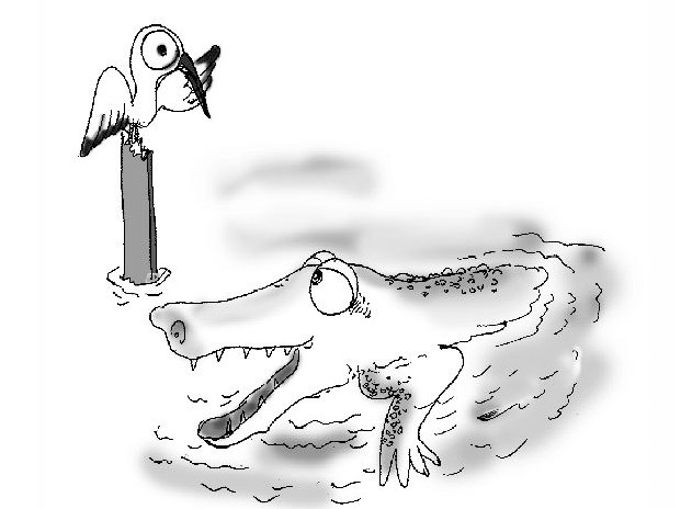 鳄鱼:你也不吃亏呀,我牙缝里的东西就可以填饱你的肚子了。