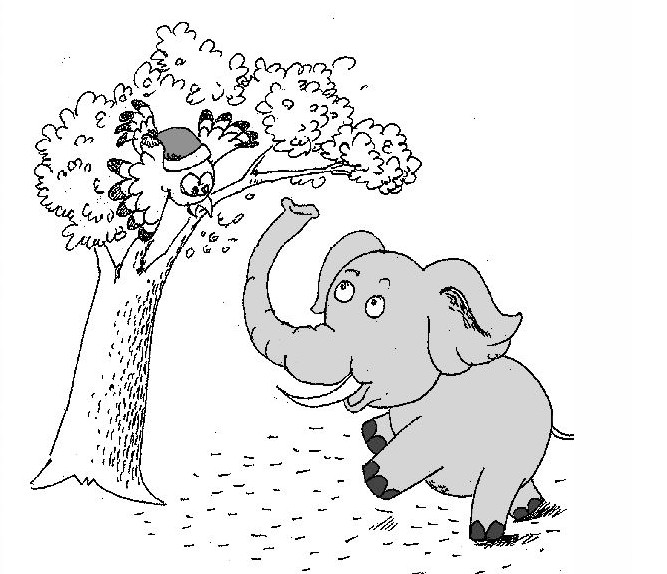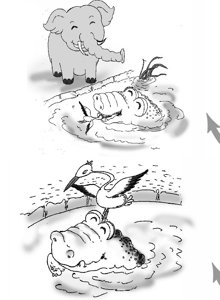 4.(树上的小鸟跟大象讲话,很焦急的样子。)