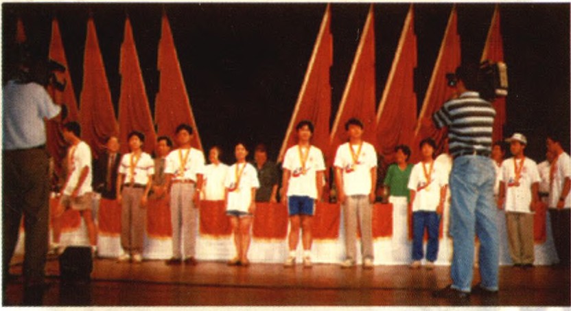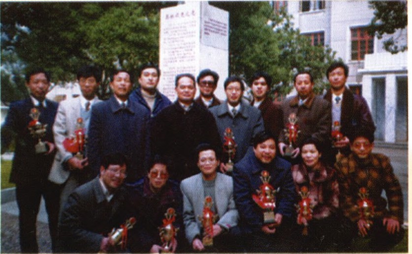1993~1998年先后有60多位老师获湖南省“神箭”英才导师奖(图为获奖老师与学校领导合影留念)