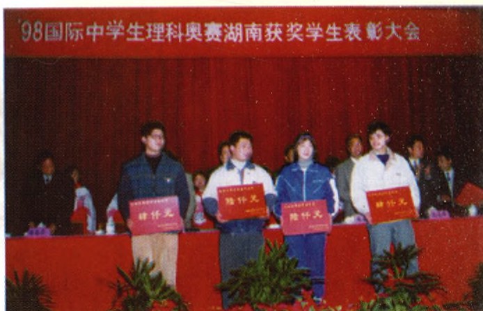 郭婧同学(女)在湖南省‘9 8理科奥赛表彰会上领奖