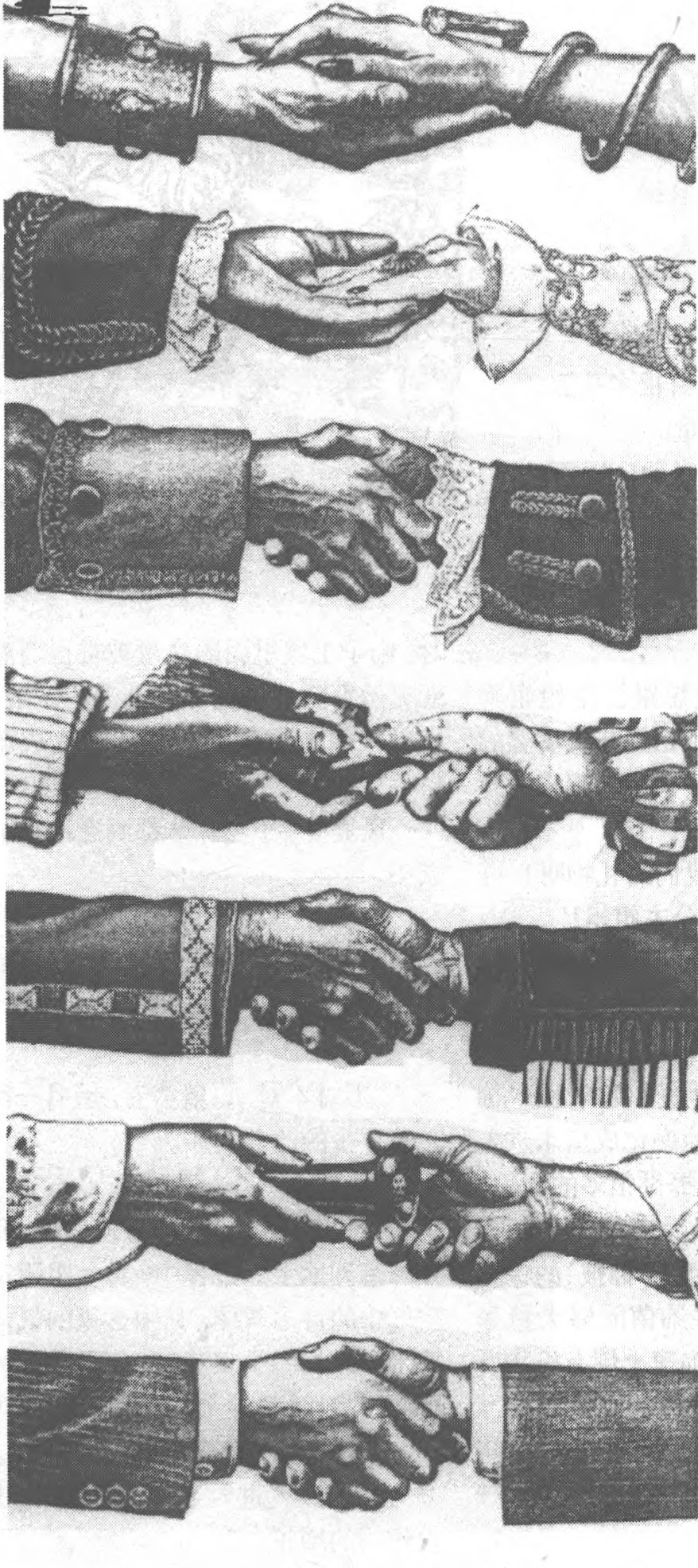 同学们听后面面相觑,感到这个问题太烦杂;“四百多人”多多少,不知道。有人可能与每一位客人都握了手,他就握了四百多次手,有的人可能只握了几次手,也可能有人一次也没握手,也可能有几人或几十人握手的次数一样多,也可能每个人握手的次数都不一样多,无头绪可理。而题目给的条件又太少,少到只有人数这一个条件,而且这个条件也是个模糊数字“四百多人”。同学们讲论了很久,找不到解题的思路。