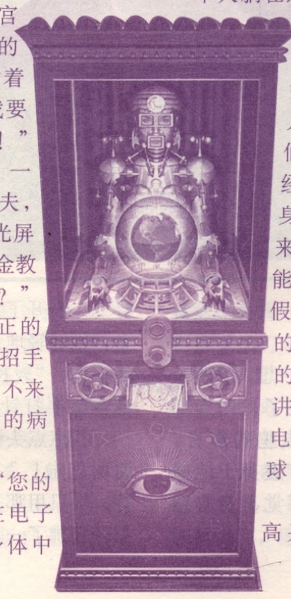 机器到底是机器,不管做得怎样巧,总不能完全代替人的思维活动。我想,难道这月宫医院就没有一个真正的 医生么?于是,我对着荧光屏大声呼喊:“我要医生,要真正的医生! ”