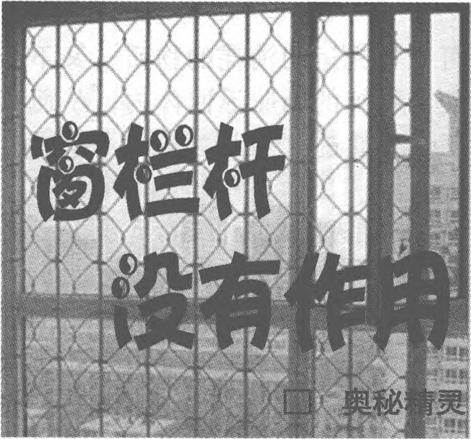 警长来到现场检查。正如伯爵所说,盗贼是从换气窗打碎玻璃拨开插销进屋的。但令人感到无法理解的是,并没有发现铁栏杆有掰弯或割断后用速干胶粘上去的任何痕迹。警长简单地测量了一下两根铁栏杆间的距离,这又粗又结实的铁栏杆间的缝隙不足10厘米宽。不要说大人,就是小孩子也是无法钻过去的。