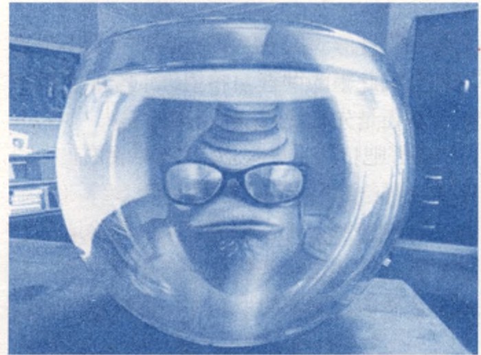 “好吧! ”米勒说道,“刚才我们三个跟往常一样给这些鱼儿们喂食,用SCP (单细胞蛋白)喂它们。那家伙就从下面偷偷地'流'过来了。你知道,我们是浮在半空中的。它咬了教授拿着SCP的手,然后就用尾巴抽他。哦!可怜的教授。”此时的米勒已经泣不成声了。