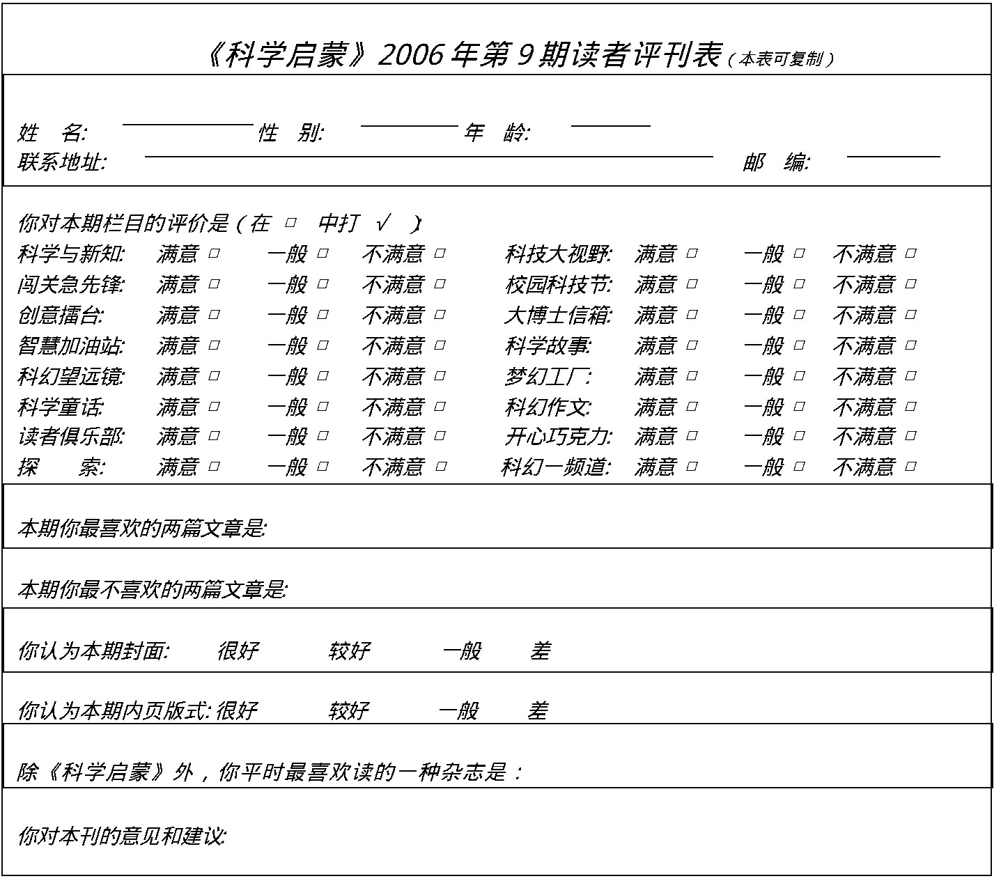 请将你的回答写在表格里,然后寄给我们,我们的地址是: