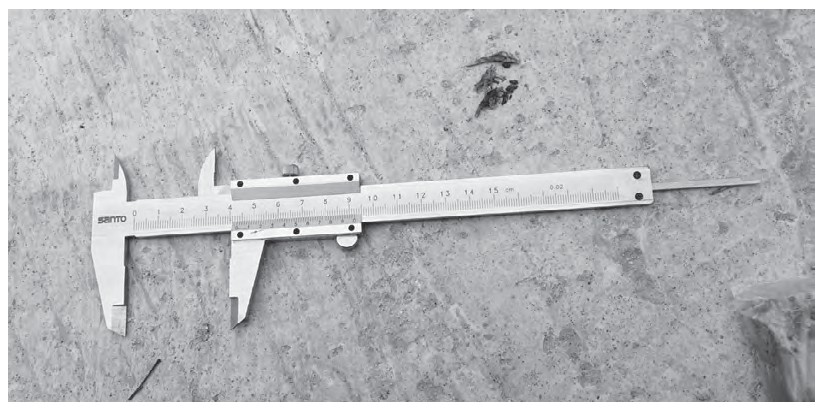 老师为我们准备了其他熊猫粪便中的竹节,教我们用游标卡尺来测量咬节。