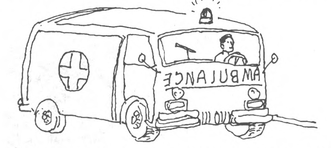 这种奇特的书写方式妙处在于:人们一见这串反字就知道该车是救护车,用不着细看车身上的文字,极易辨认。而当它超车时,根据面镜所成的像与物体相对于镜面对称的原理,前面车上司机从后视镜(凸面镜)里看到车头的标志正好是反过来的“AMBULANCE” (救护车),反字就变成了正字,司机会马上为它让道。