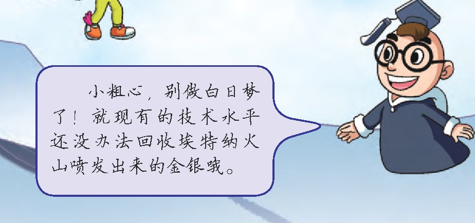 如果说“喷冰”的火山还没有把小伙伴们惊呆的话,那么“喷金吐银”的火山会不会让你们眼前一亮呢?!意大利的埃特纳火山一直以“爱吐烟圈”闻名。可是你知道吗?这座活火山还会“喷金吐银”哦!它每次爆发的喷发物中会包含2.4千克金子和9千克银子,这些金银与其他喷发物以气体的状态被喷到五六十米的高空,在空中冷却后再以粉末状降落到地面和海里。