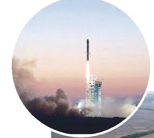 2015年12月17日8时12分,在中国甘肃的酒泉卫星发射中心,长征二号丁运载火箭背负着暗物质探测粒子卫星“悟空”在霞光初露的背景下腾空而起。它驾着七彩祥云,顺利进入预定转移轨道,此次发射任务圆满成功。