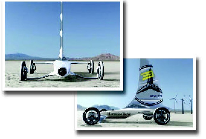 图片中的奔驰概念车名为“F0”,曾参加2008年举行的洛杉矶设计挑战赛。F0由安装在4个车轮上的电动发动机提供推动力,发动机电池则利用安装在车身上的太阳能电池板获取能量。