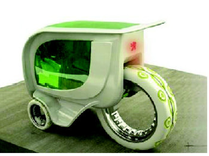 标致Shoo是最具未来派色彩的太阳能概念车之一,其最大特色就是三角形外形设计和为发动机提供能量的太阳能电池板车顶。Shoo的设计灵感来源于一艘船,其大部分空气动力学机制均与这种设计有关。