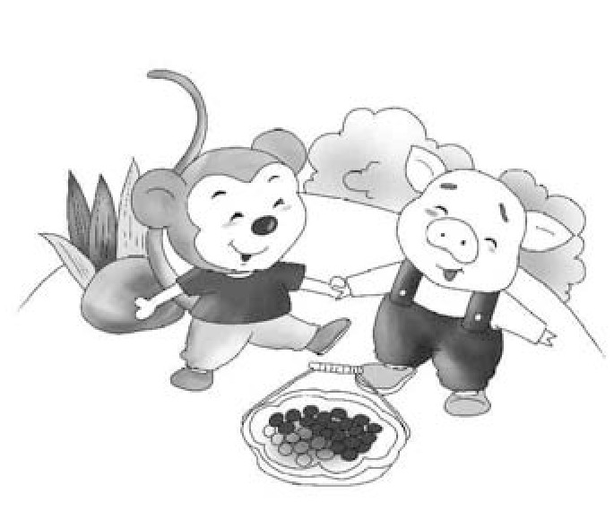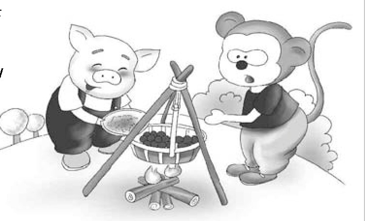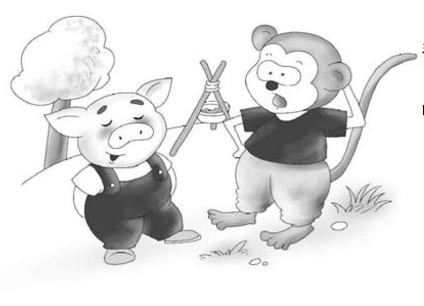 2.(小猪看见小猴子要炒栗子,摇着手让他先别炒,小猴子很疑惑。)