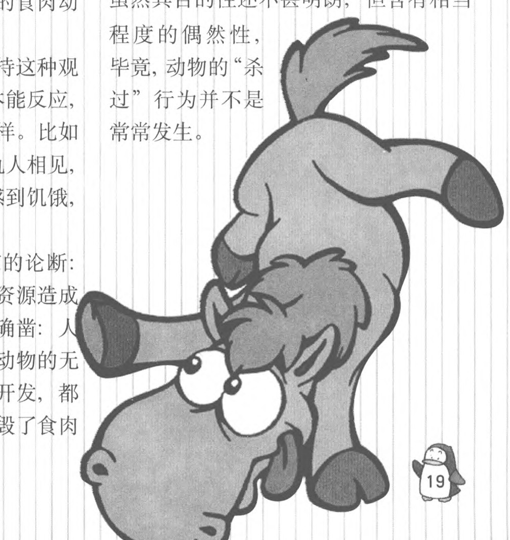 环保专家则提出令人震惊的论断这是人类破坏环境、浪费自然资源造成的后果!他们的阐述似乎证据确凿:人类对森林的乱砍滥伐,对野生动物的无 情捕杀,对海洋资源无止境的开发,都严重地打破了生态的平衡,摧毁了食肉动物赖以生存的食物链——这些都给凶猛动物造成一种本能的恐慌,它们无法用语言来表达这种悲愤,只能通过大肆杀戮其它动物来缓释紧张的情绪。