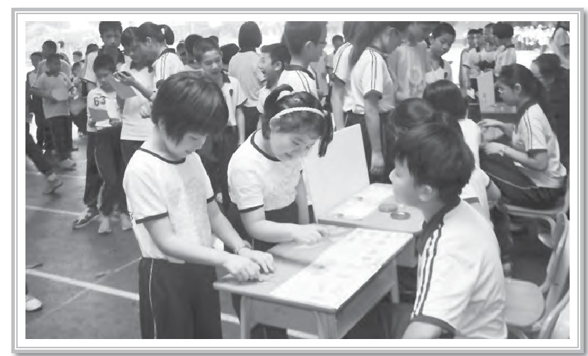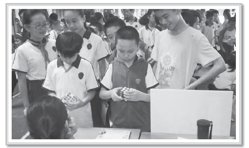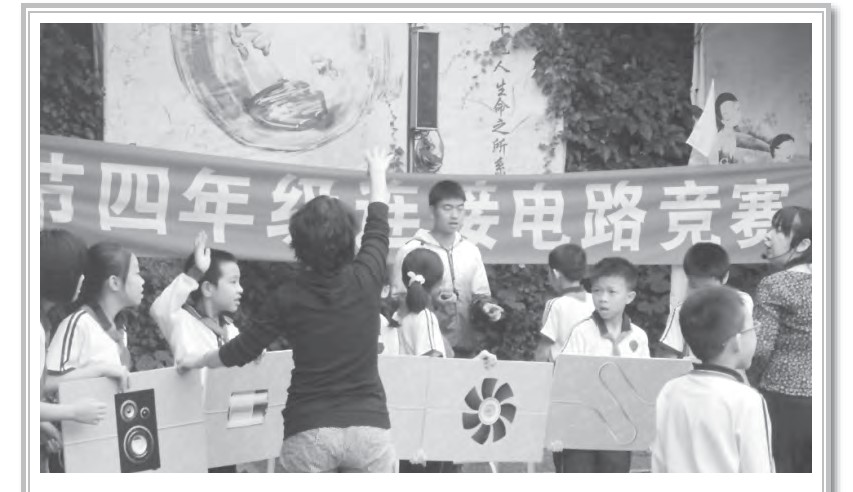 四年级的“连接电路”比赛需要依靠团队协作才能完成,只有队员们相互帮助、合作无间,才能在最短的时间里完成电路的连接;五年级的“七巧拼图”比赛不仅要考同学们的眼力劲儿,还得拼速度;六年级的“骨牌”比赛,则完全要靠耐心和细心才能在规定时间内顺利完成比赛。