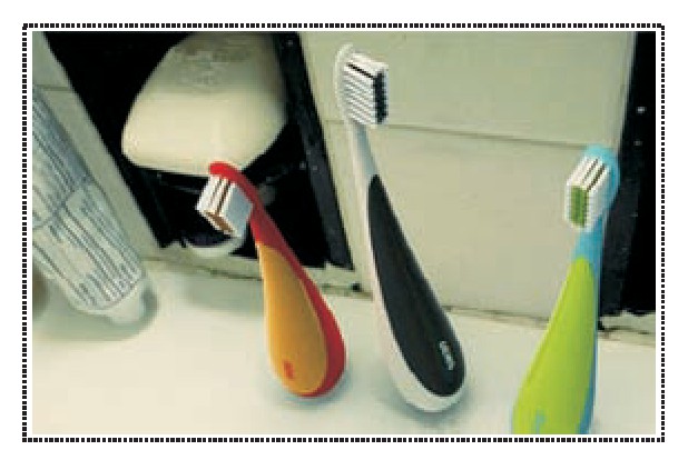 如果你总是偷懒将牙刷直接搁置在洗漱台上,那这款牙刷就很适合你。牙刷刚放置时,会摇摇摆摆,直到达到一个平衡的状态——就像不倒翁!