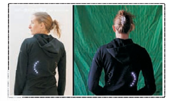 这种新式的衣服背部有LED方向指示灯,而且电路部分采用了防水设计,即使水洗也不用担心衣服会失灵。衣服手腕处带有控制开关,骑单车的时候很实用,提高安全系数,尤其是深夜骑车的时候!