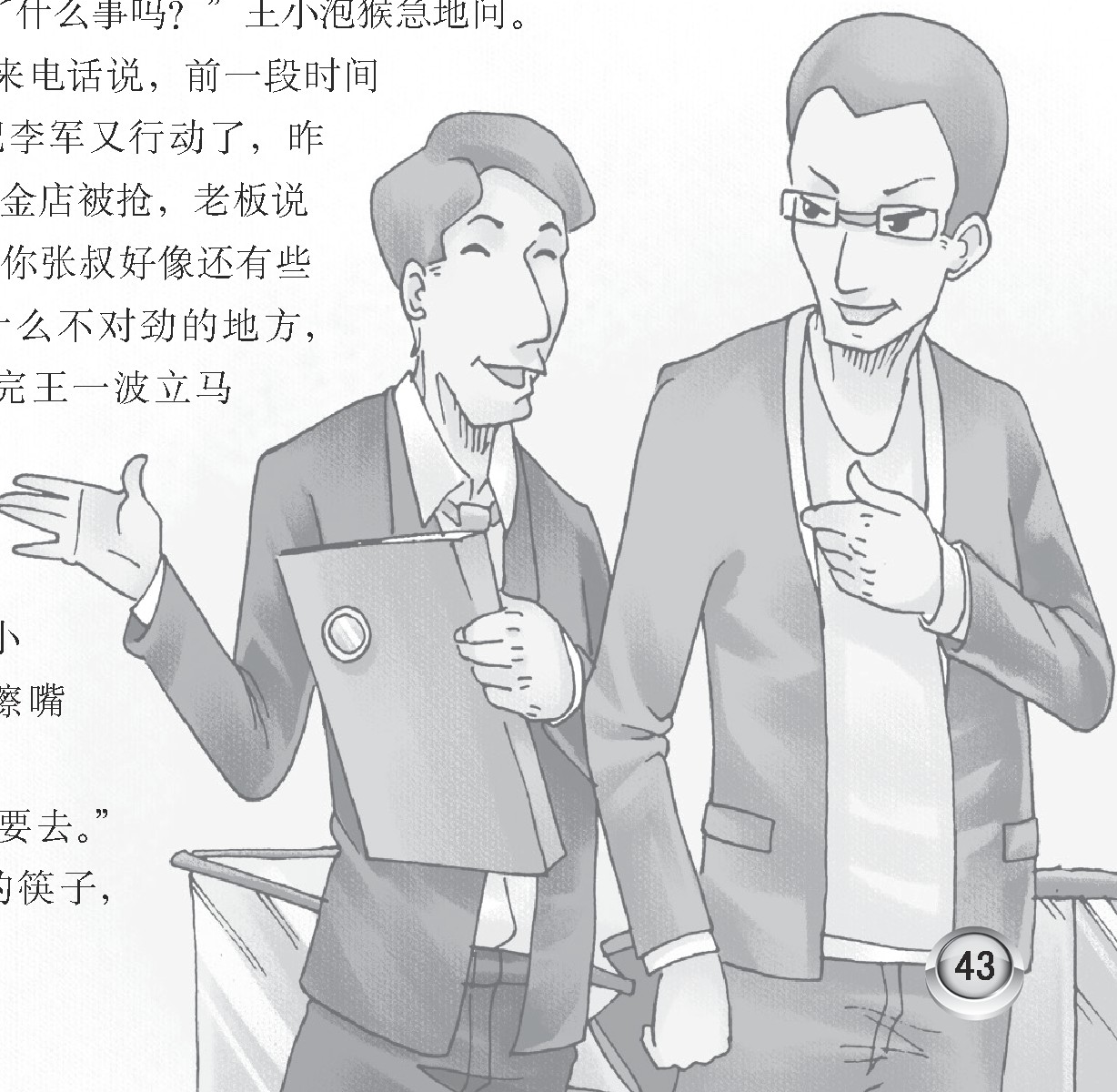 “你张叔刚刚来电话说,前一段时间多起抢劫案的疑犯李军又行动了,昨晚香樟路上有一家金店被抢,老板说看到了嫌犯,但是你张叔好像还有些迟疑,估计是有什么不对劲的地方,我得去看看。”说完王一波立马穿好衣服,准备出门。