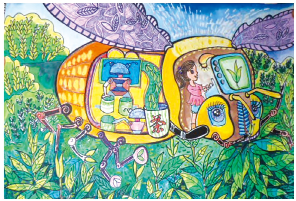 贵州湄潭县是一个盛产茶叶的地方,万亩茶海碧浪滔天。可每次看到茶农们费力地采摘茶叶,我就想,要是有一台茶叶采摘加工机器那该多好啊!所以我就设计了它,有了这台机器,从摘茶叶到加工烘干茶叶都由电脑控制,每台机器只要一个人操作,其他事情都可以由机器代劳,那就真是太好了!