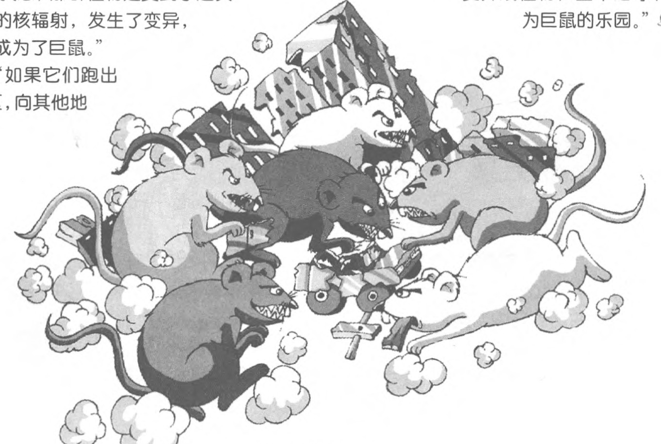 阿风咽下一杯水,定了定神,仍不安地说道:“我们几个在5号区调查时,突然望见前方尘土飞扬。过了一会,看清了,天哪!一群巨大的老鼠! ”阿风停住了,眼角闪过一丝恐惧,大山点了点头,示意他说下去。