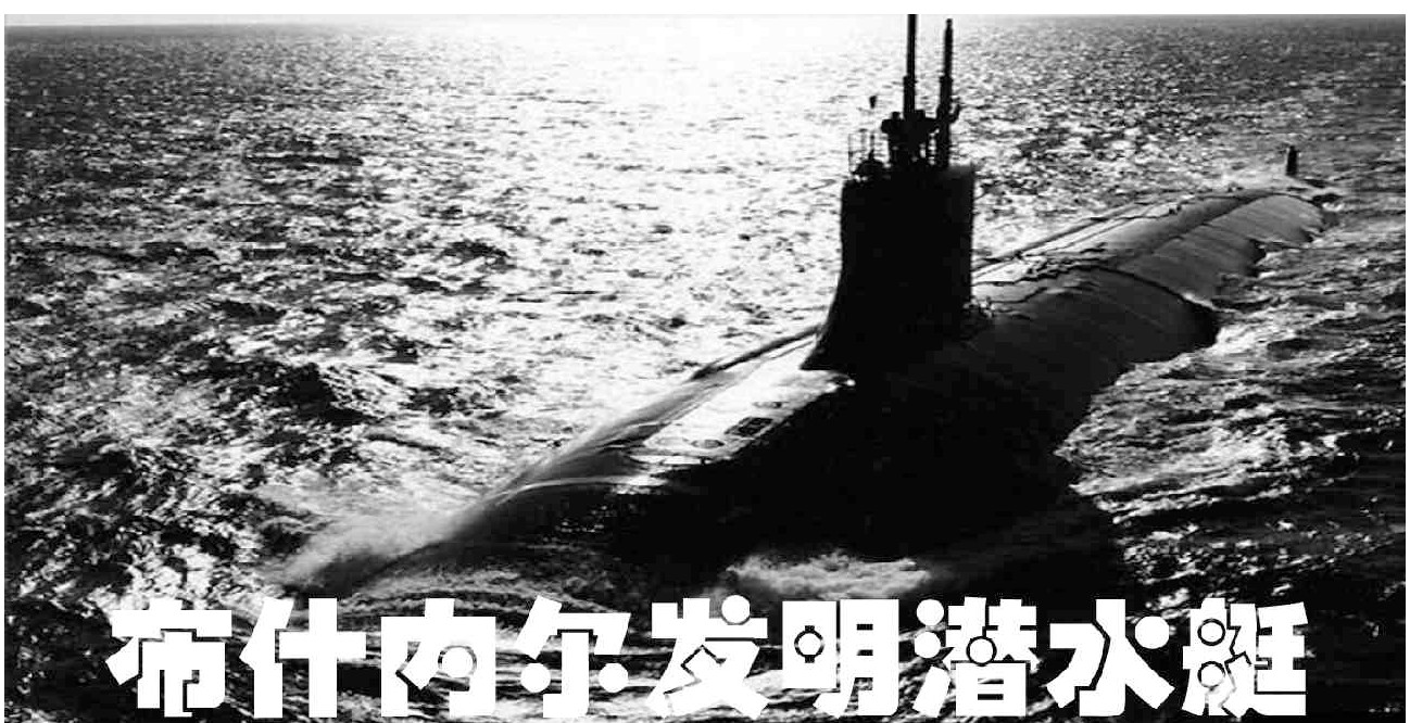 一天傍晚,他与几个士兵下岗后,一起到海边散步。他们爬到礁石上,一边聊天,一边欣赏落日余晖下的海景。海水很清澈,他们见一群活泼的小鱼自由自在地在水中游着,像是在觅食,又像是在玩耍。突然,水下有一条大鱼悄悄潜游过来,游到小鱼的下方后,猛地朝上一跃,咬住了一条小鱼,别的小鱼吓得惊魂不定。士兵们见了海底世界的这场“海战”,觉得十分有趣。这却使布什内尔大受启发:原来笨拙的大鱼就是这样逮住机灵飞快的小鱼的。能不能造个像大鱼那样的船,潜在水中神不知鬼不觉地钻到英国战舰底下去放水雷,炸它个人飞舰沉呢?若能那样,该有多痛快呀!他越想越入迷,直到同伴们喊他走,还呆呆地坐着。