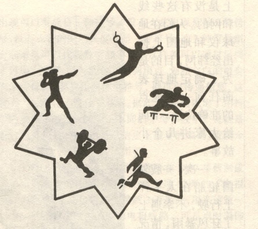 请将图中的十角星分成面积、形状相同的5份,使其中每份中都有一体育项目,该如何分?