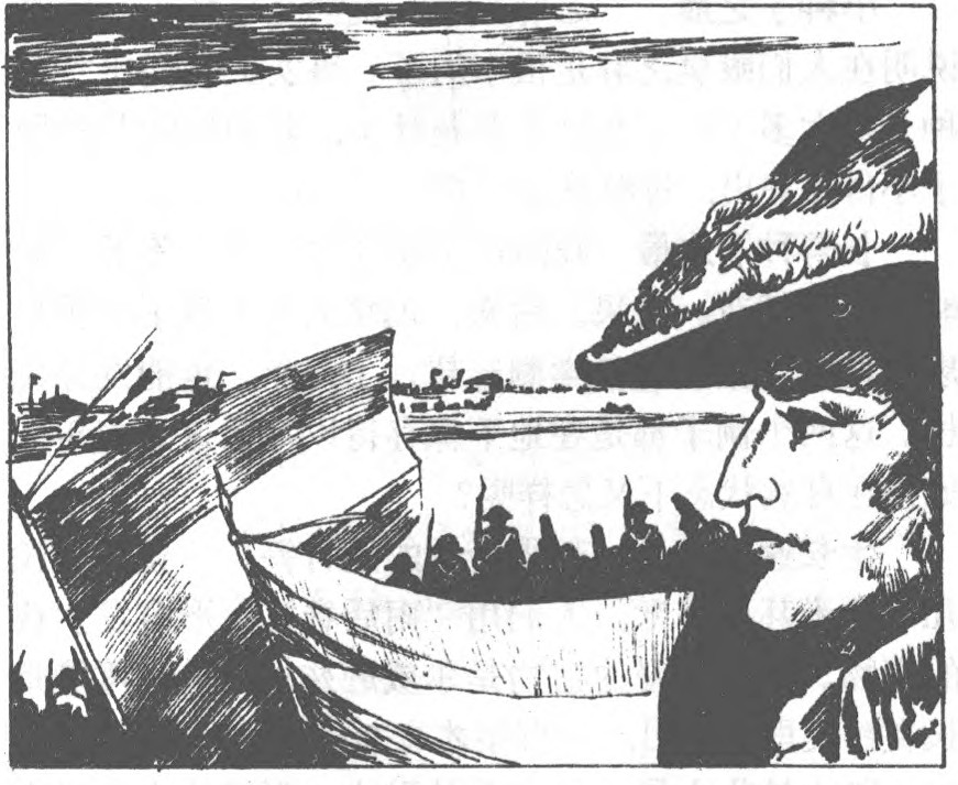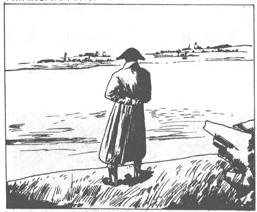 ④拿破仑伫立岸边,一边细心观察对方阵地,一边在心中苦苦思索破敌良策。
