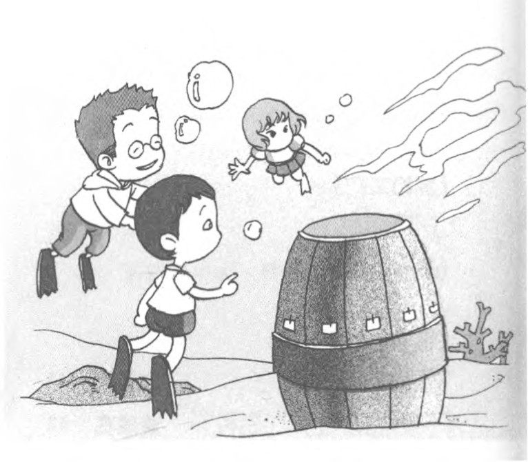 “啊,大海真美啊!这里有成群的海鸟,还有好多漂亮的贝壳捡呢! ”小好问似乎已经陶醉了。“你们看!海里有个倒扣的巨型水桶。”这可不是水桶啊,这就是海水浮体水库。水库壁的材料都是不起眼的塑料板,水库是用来蓄集淡水的……只听小粗心惊讶地说:“什么?用塑料板做水库?还真没听说过! ”还有更绝的——这个水库连底都没有!为什么会这样呢?