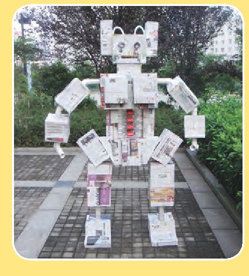 看了同学们精心制作的手工作品,奥秘精灵突然发现,我们平时丢弃的那些车西,原来还有那么多的用处,我们对这些东西的利用远没有达到环保的目的。牛奶盒、饮料瓶、一次性餐具、废纸箱……这些曾被我们认为无用而被忽略的东西,在彩笔、剪刀、胶水、竹签、铁丝的帮助下,就可以变成储物箱、装饰品、玩具……当然,最重要的是加上一个充满创意的头脑。