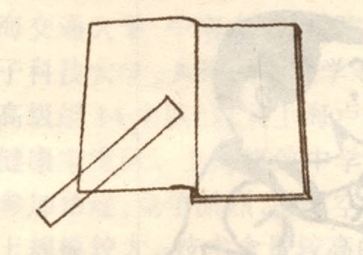 新学期伊始时,同学们总会领到许多册具有漂亮面孔的新书。可是时间一久,这些书的边角总会气鼓鼓地翘起来。怎么回事呢?因为书的封面是贴塑的,而封面的内面却没有贴塑,这样封面的两面伸缩性便不一样,贴塑的一面逐渐收缩,然后就容易卷成一个喇叭筒筒。那么,用什么办法才能“镇压”住这些上翘的书角呢?做法是这样的: