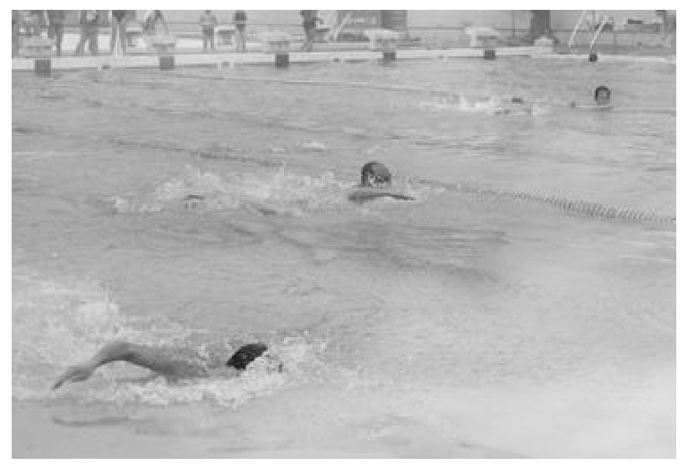 “加油!加油!”拉拉队疯狂了,这么精彩的游泳大赛,大家还是第一次看见。不,这哪里是游泳比赛,简直是《动物世界》游泳动物专辑。十条泳道里,各式各样的“动物”在竞相展示游泳技能,有企鹅、有鸭子、有海豚、有泥鳅、有青蛙……