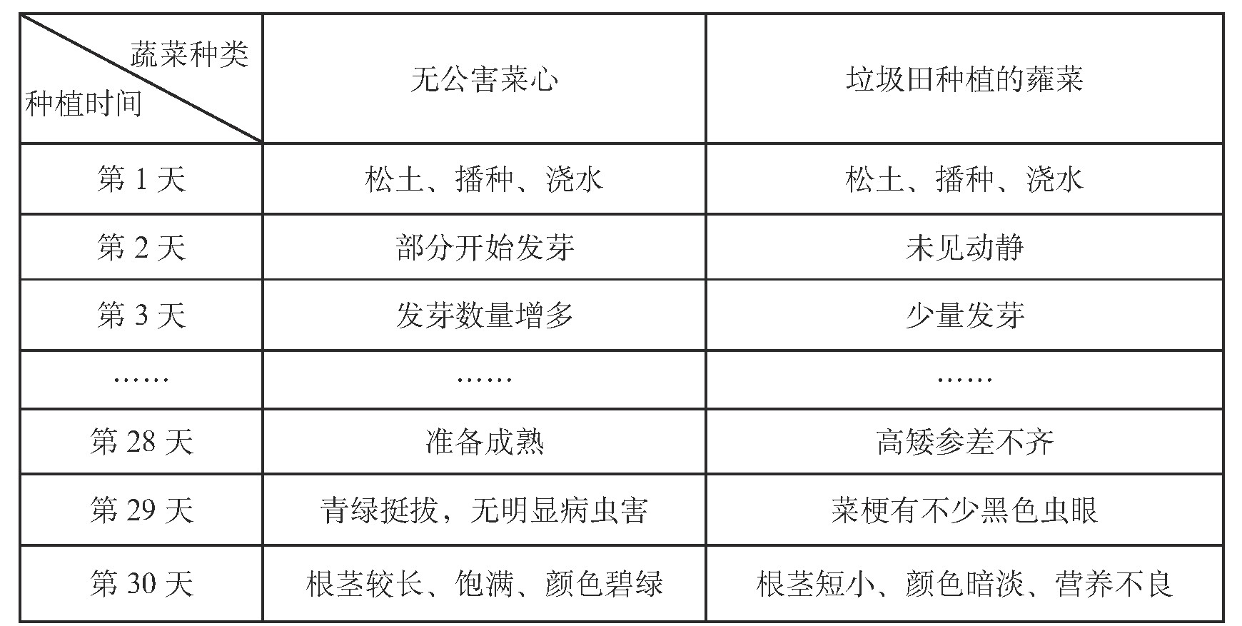 实验调查一 对比“垃圾菜”与无公害蔬菜土壤环境、成长过程的区别