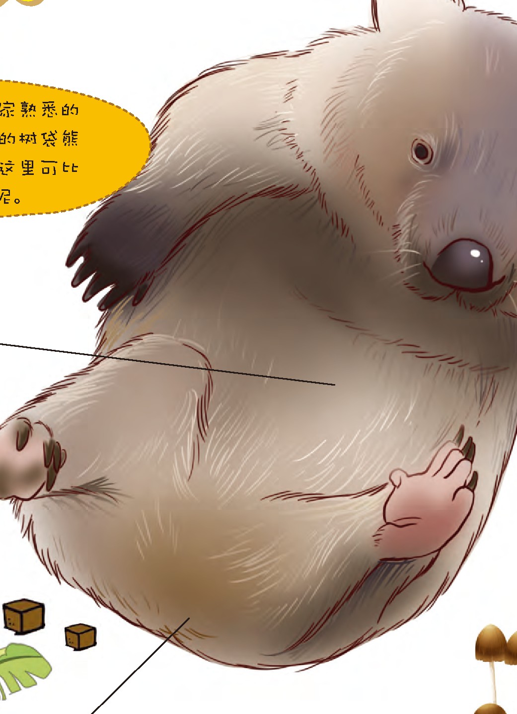 大家好,我叫袋熊,和大家熟悉的树袋熊同属袋鼠目。与爱爬树的树袋熊不同,我更喜欢住在地底下。这里可比外面凉快多了,而且也更安全呢。