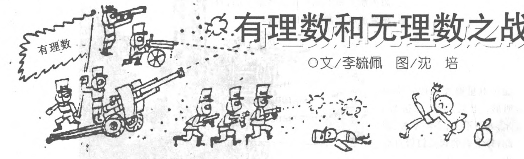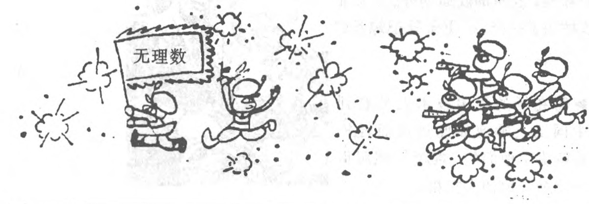 “深更半夜,哪来的枪声? ”小毅爬上屋后的小山一看,啊呀,山那边摆开了战场,两军对垒打得正凶。一方的军旗上写着“有理数”;另一方的军旗上写着“无理数”。