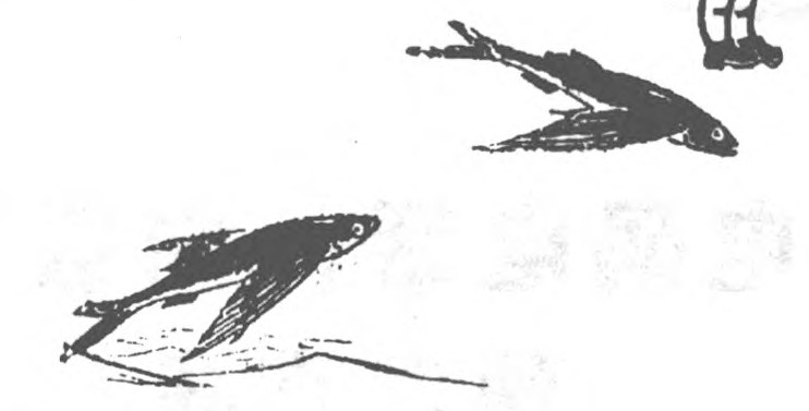 会“飞”的鱼在热带的海洋中有一种飞鱼,在躲避敌人的进攻时会跳出水面飞行。在风力适当的时候,它能在离水面4 ~5米高的空中飞行200 ~ 300米远。它们飞行时往往落到小汽艇和轮船的甲板上面。