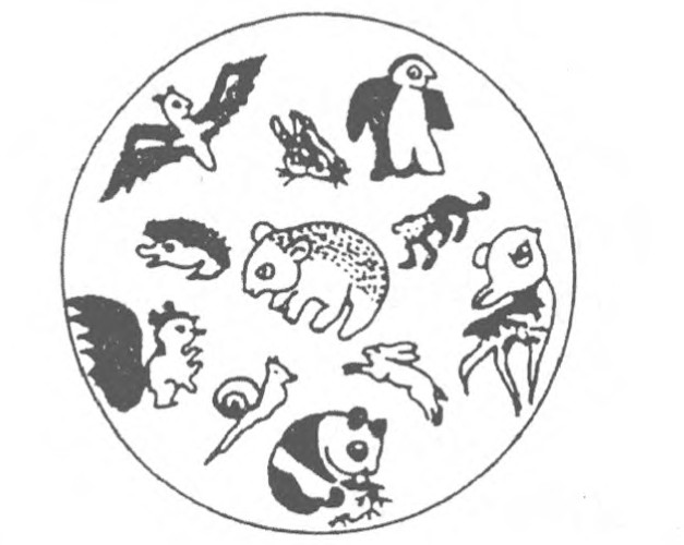 圆圈内有11种动物,请你画上5条直线,把所有的动物都隔离开。