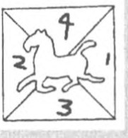 请把这个不规则图形剪成四部分,然后拼成一个正方形,并且使正方形里出现一匹马的图案。有点难度哦!