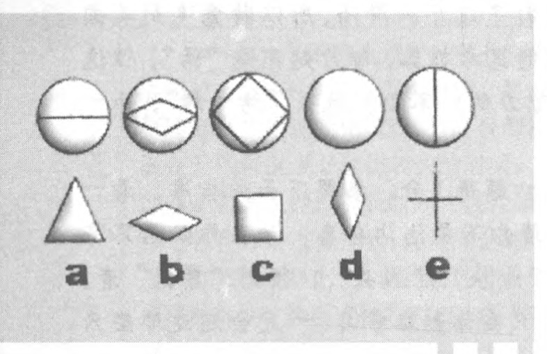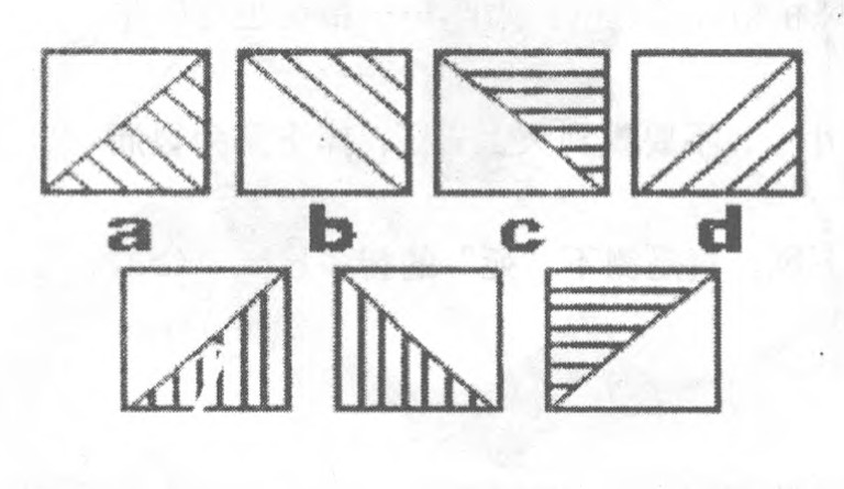 题3在左边的图中,已知上一行a、b、c、d四个图形中,有一个图形与下一行中的某个图形最为相似。那么,它到底是哪一个呢?