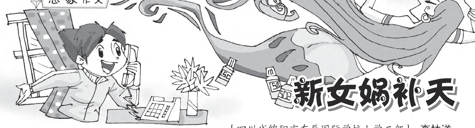 我打“114”查了一下女娲的电话,居然还真查到了。“女娲娘娘,再帮我们补补天吧!”“天又破了?”女娲娘娘不满地说,“我不想再去补了!”“求你了,难道你就忍心看着地球上的人纷纷死去吗?”我撒娇似的央求道,并且还带着一点哭腔。女娲娘娘迟疑了一会儿,终于答应了:“不过你们要准备七彩雨花石、天山雪莲和502胶水。”
