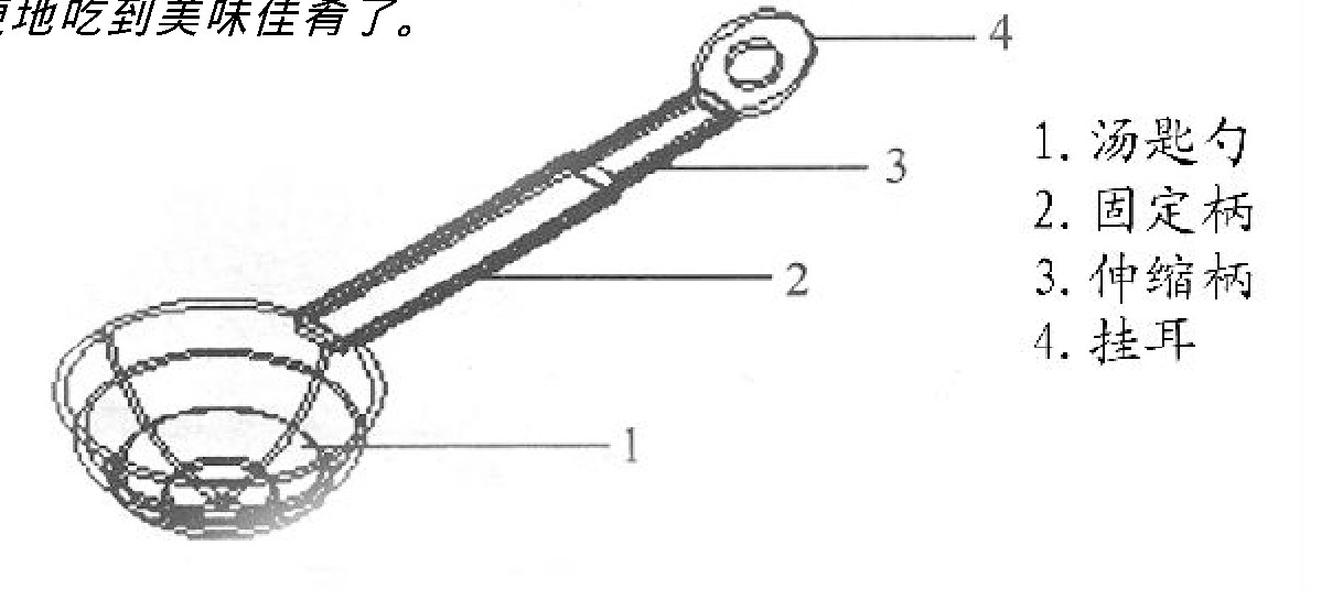 汤匙,是一日三餐的必需品。现有汤匙往往较短,当饭桌的菜离人太远时,人必须要站起来,这样既不便也不雅观。苏嘉莹同学想到:如果把汤匙柄做成可伸缩可调节的,不就可以方便用餐吗?在聚餐时,如果没有餐台转盘,不论你坐在哪个角度,只要拉长伸缩汤匙的手柄,就可以方便地吃到美味佳肴了。