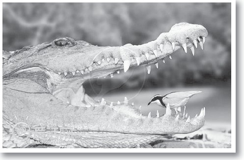 鳄鱼是水陆两栖动物,口阔牙利,生性凶猛残暴,经常捕食水边的动物。而燕千鸟则是一种弱小的鸟,但它常常站在鳄鱼的嘴边,却不会有危险。原来,燕千鸟是鳄鱼的义务保健员,它把卡在鳄鱼牙缝里的肉渣一一啄食掉。如果发现鳄鱼口腔里有寄生虫如水蛭等,燕千鸟还会钻到鳄鱼的牙边,把水蛭啄食。燕千鸟如此尽职地保护鳄鱼的身体健康,你说鳄鱼怎么会舍得伤害这位医生呢?