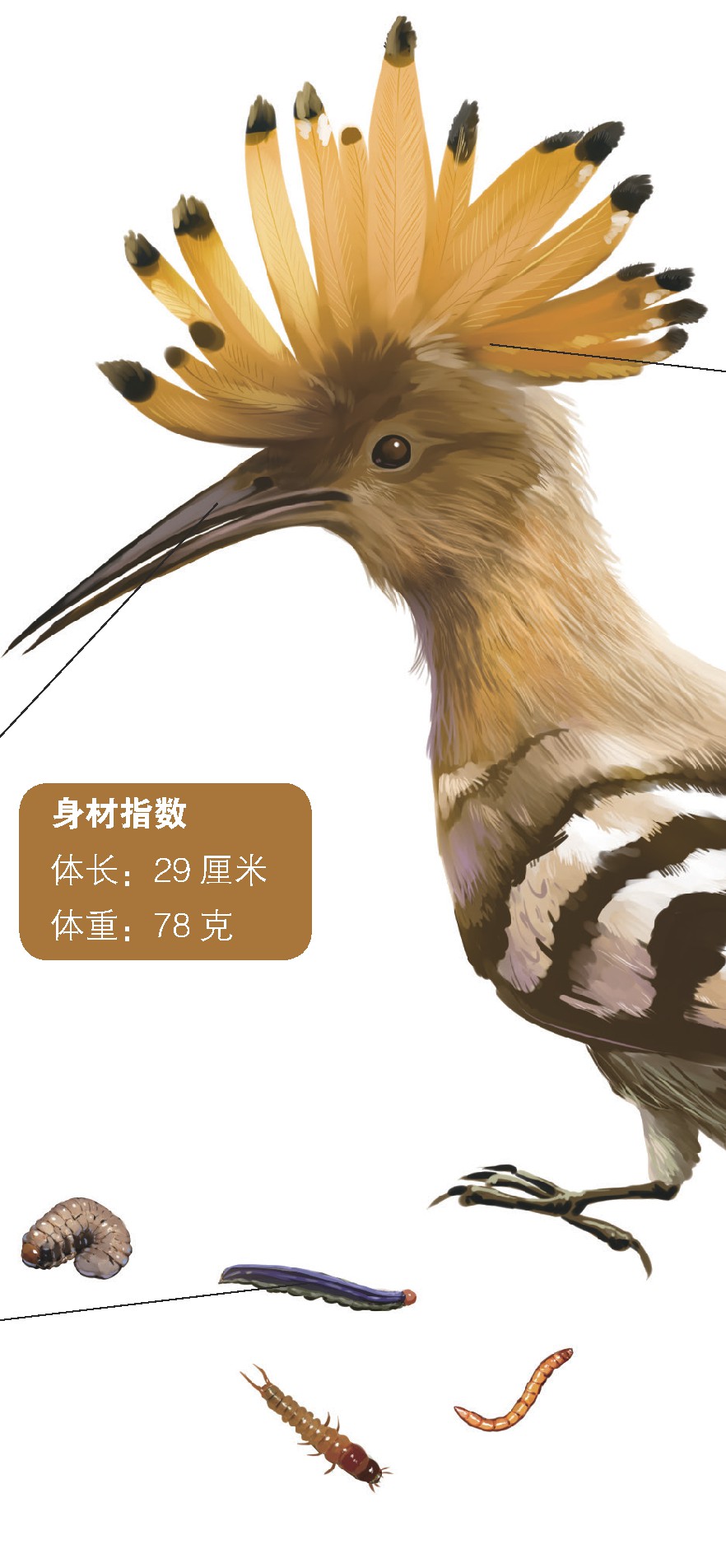 不少人看到我的名字时都会问我:“你怎么会有‘戴胜’这样一个名字呢?”其实,我的名字要拆开来解释,“戴”是戴上的意思,“胜”是我国古代女性的一种华丽的头饰——华胜。古代人觉得我们头上的羽冠就像女子戴着华胜,就把我们叫作戴胜了。