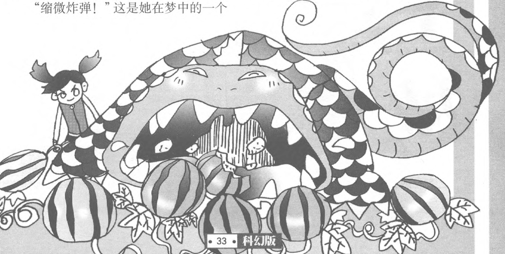 乐荫宇瞅准时机,吹起了基因复原曲。嘹亮的琴声在瓜地上空回旋激荡,被缩微了的西瓜在怪兽腹中迅速还原膨胀。瓜地里接连爆出“轰轰”巨响,红红的水柱冲天而起,怪兽被“缩微炸弹”炸得四分五裂,血肉横飞。